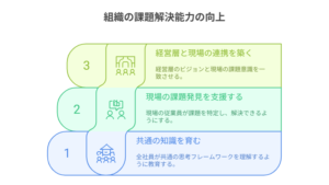 個人のスキルに頼った課題解決には限界があります。真に強い組織とは、全社員が共通の思考フレームワークを持ち、自律的に課題を発見・解決できる文化が根付いている組織です。