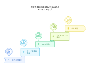 - 現場へ: AIは人員削減の道具ではなく、より価値の高い業務にシフトするための支援ツールであることを粘り強く伝えます。