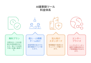 AI議事録ツールは、月額数千円の個人向けから、数十万円以上のエンタープライズ向けまで幅広く存在します。自社の規模と目的に合わせた「費用対効果(ROI)」の見極めが重要です。